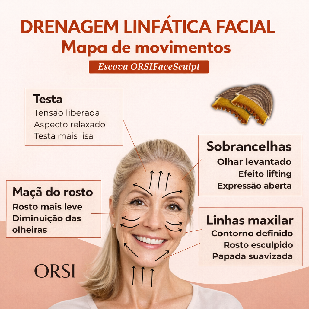 Com o ORSI FaceSculpt®, você incorpora à sua rotina um ritual de drenagem facial elegante, eficaz e profundamente prazeroso, inspirado em técnicas consagradas de cuidado estético — sem depender de clínicas e sem excessos.